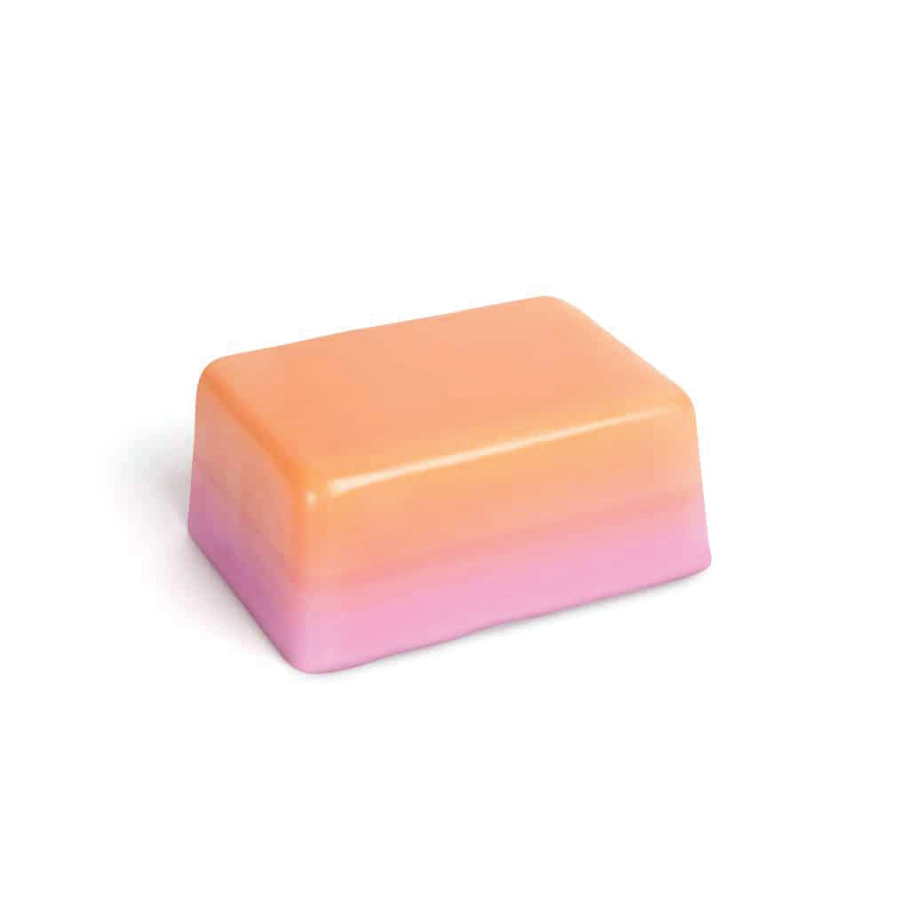 A soap that makes your mouth water? It’s possible with our luscious new Peach Passionfruit double-decker bar! Juicy summer peach meets the slightly sweet-tart of passion fruit, and is finished with the ripened notes of fragrant berry. With just a hint of vanilla amber, this one wraps you in yum. Hand-crafted with naturally moisturizing glycerin.
